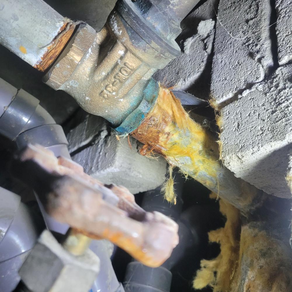 상가 공용 화장실 천장 수도배관 게이트밸브 누수로 인해